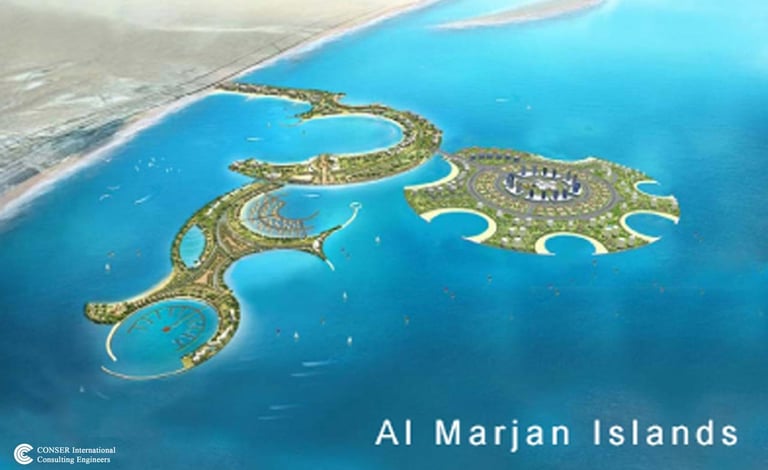 CONSER carried out all infrastructure design works including utilities for all trades, as well as supervision of construction works. The project is a man-made archipelago that extends over an area of 2.7 million square meter project consisting of four islands. Al Marjan Island features a mix of natural beauty and modern development, with white-sand beaches, waterfront promenades, luxury hotels, and residential properties like apartments and villas.